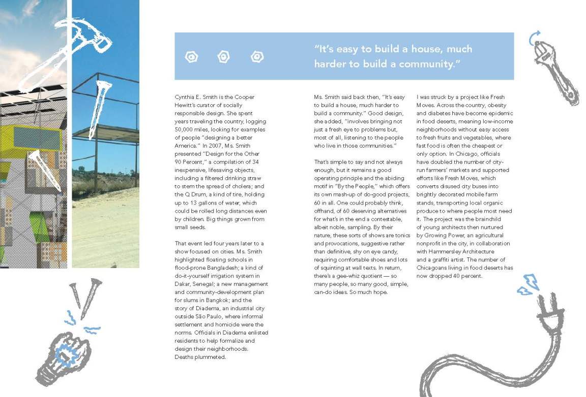 An interactive museum guidebook designed for both print and digital mediums. The design of this book highlights the DIY style of the innovations presented at the exhibit in a way that is both visually logical and engaging to the reader. The sketched images were created by physically sketching tools and hardware images in a sketchbook. They were then taken into photoshop where I adjusted the threshold to remove any non-traceable marks, and finally dropped into illustrator to be traced and vectorized. You can read more about this exhibit here.