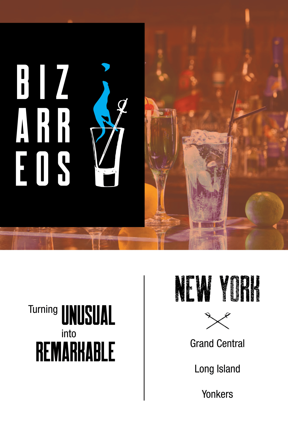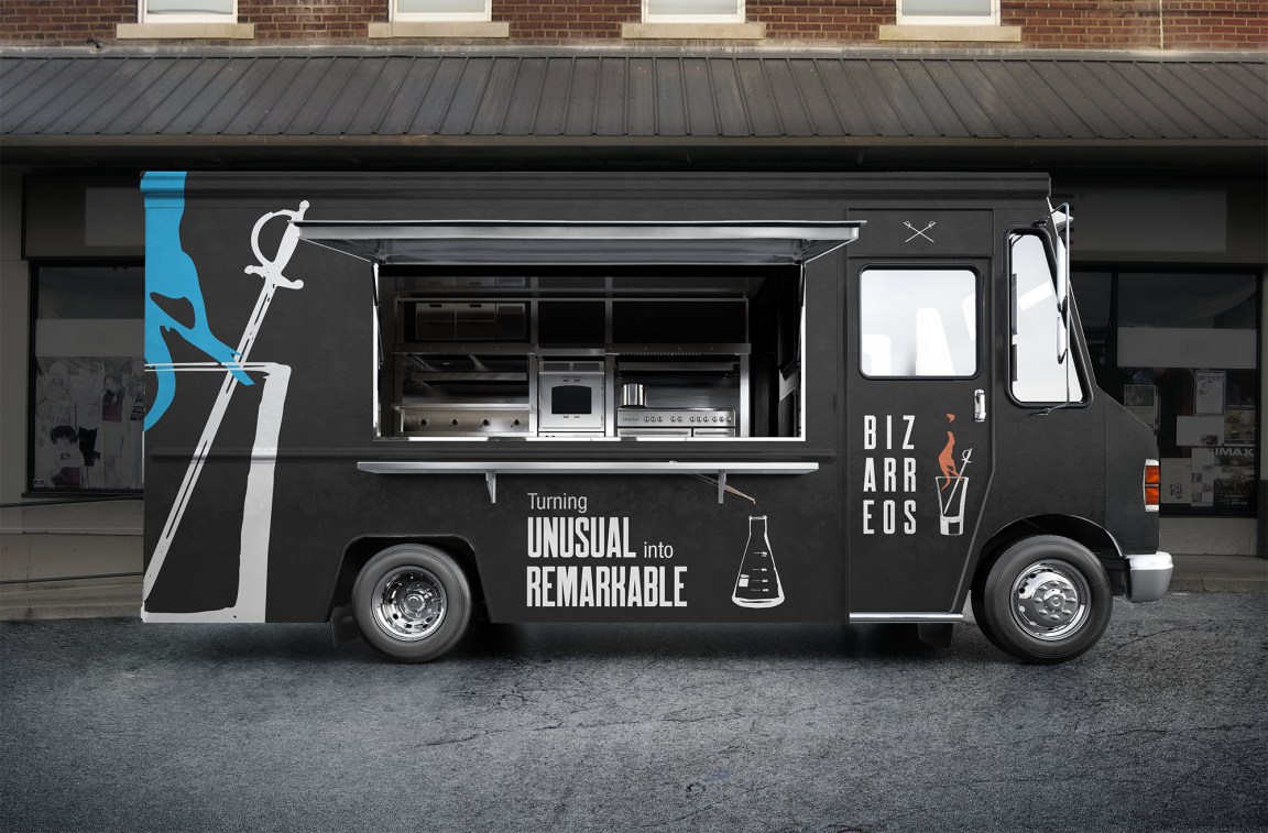 Bizarreos is a pop-up cocktail bar located in major commute areas in large cities, attracting crowds of young professionals. Bold modernist design strategies mixed with organic vector shapes display the shop’s business model of edginess and innovation.